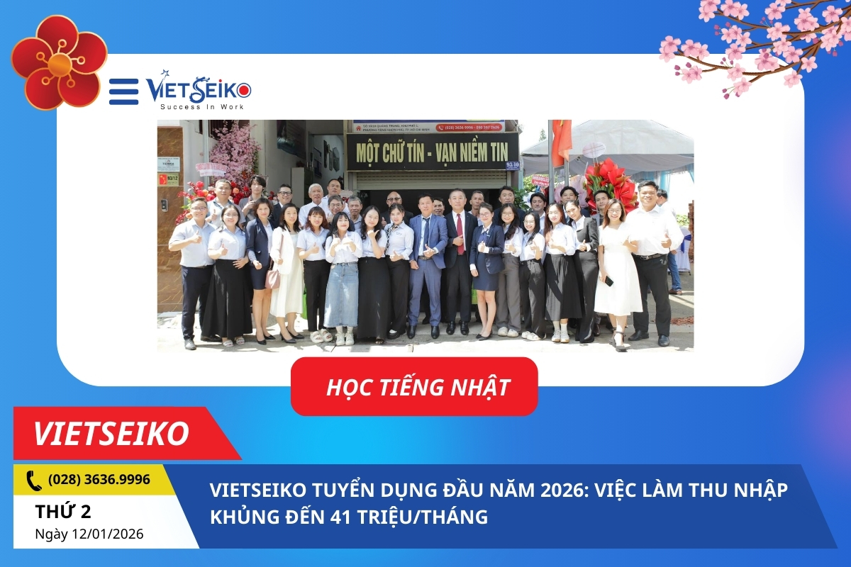 VIETSEIKO TUYỂN DỤNG ĐẦU NĂM 2026: VIỆC LÀM THU NHẬP KHỦNG ĐẾN 41 TRIỆU/THÁNG