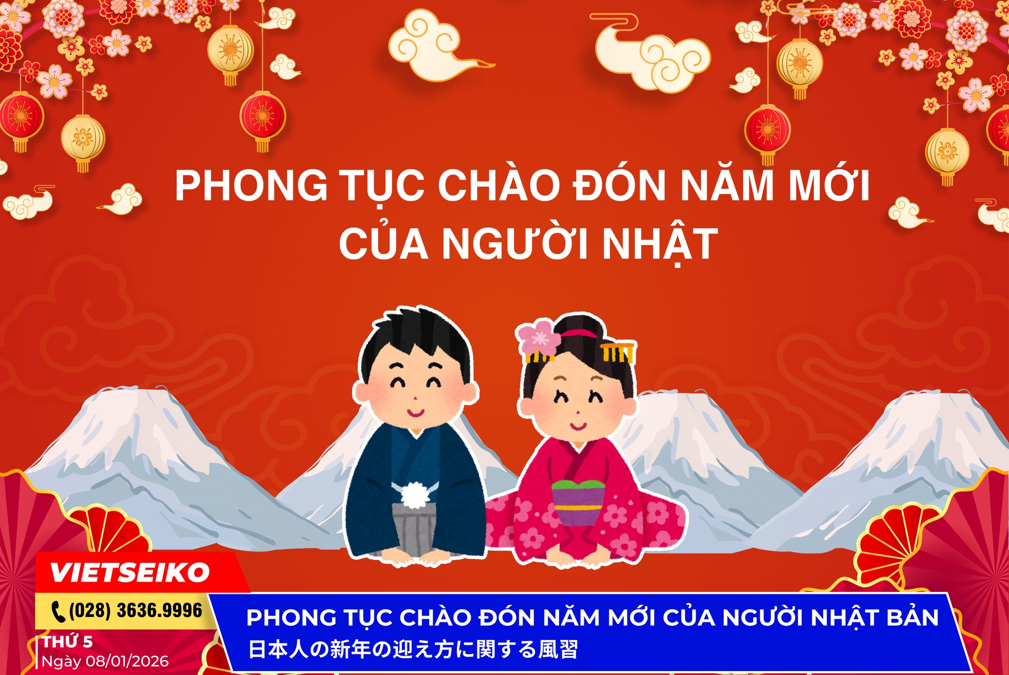 Cùng Vietseiko khám phá phong tục chào đón năm mới của người Nhật: Từ lễ Joya no Kane linh thiêng, ẩm thực Osechi Ryori tinh tế đến tục lệ lì xì Otoshidama đầy ý nghĩa.